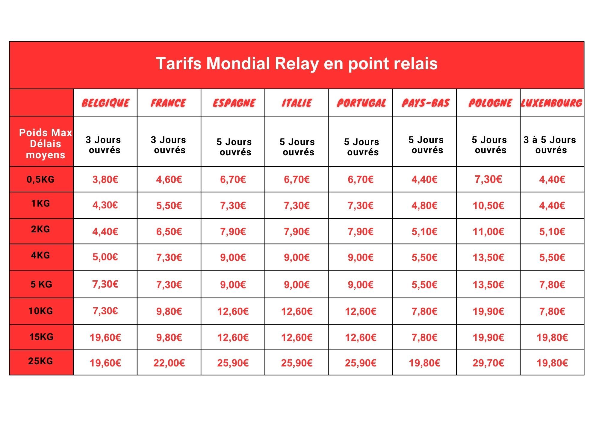 | Tarifs | Belgique à domicile | Belgique en point poste ou distributeur |
